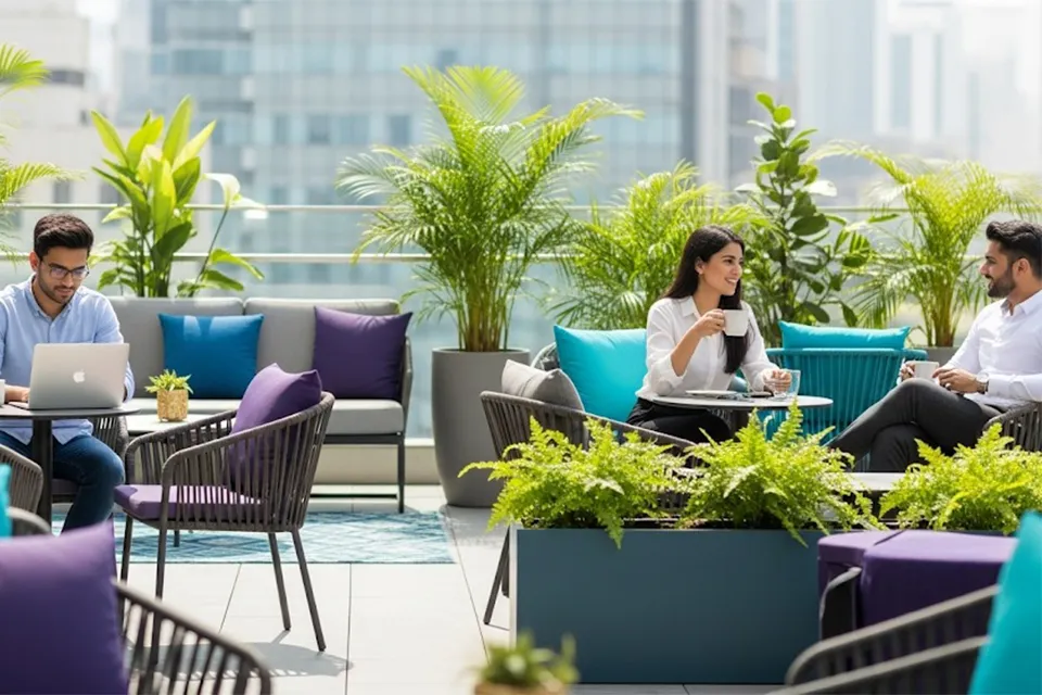 A refreshing and comfortable area, perfect for focused work or a relaxing break under the open sky.