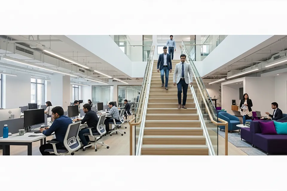 An expansive and comfortable multi-level workspace offering a broader perspective and dynamic environment.